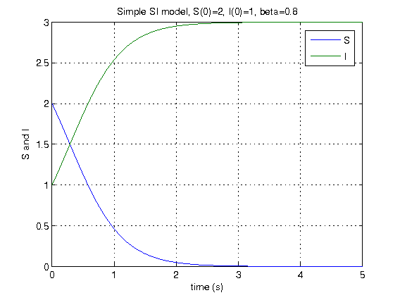 By the way, it’s easy to solve these equations exactly. The total number of people doesn’t change, so is a conserved quantity. Use this to get rid of one of the variables. You’ll get a version of the famous logistic equation, so the fraction of people infected must grow sort of like this: